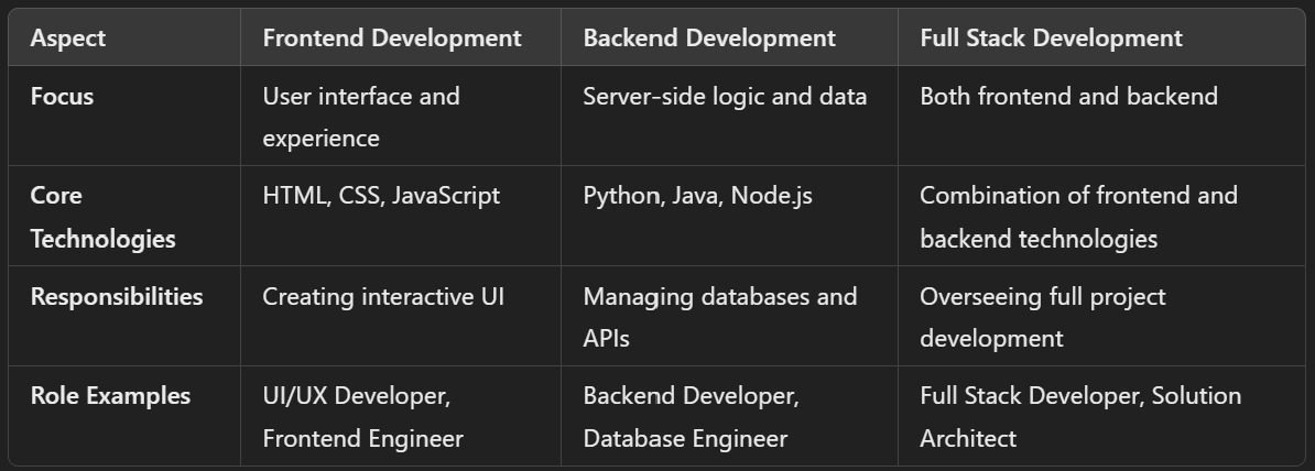 This article explores frontend, backend, and full stack development, breaking down their responsibilities, technologies, and career opportunities.