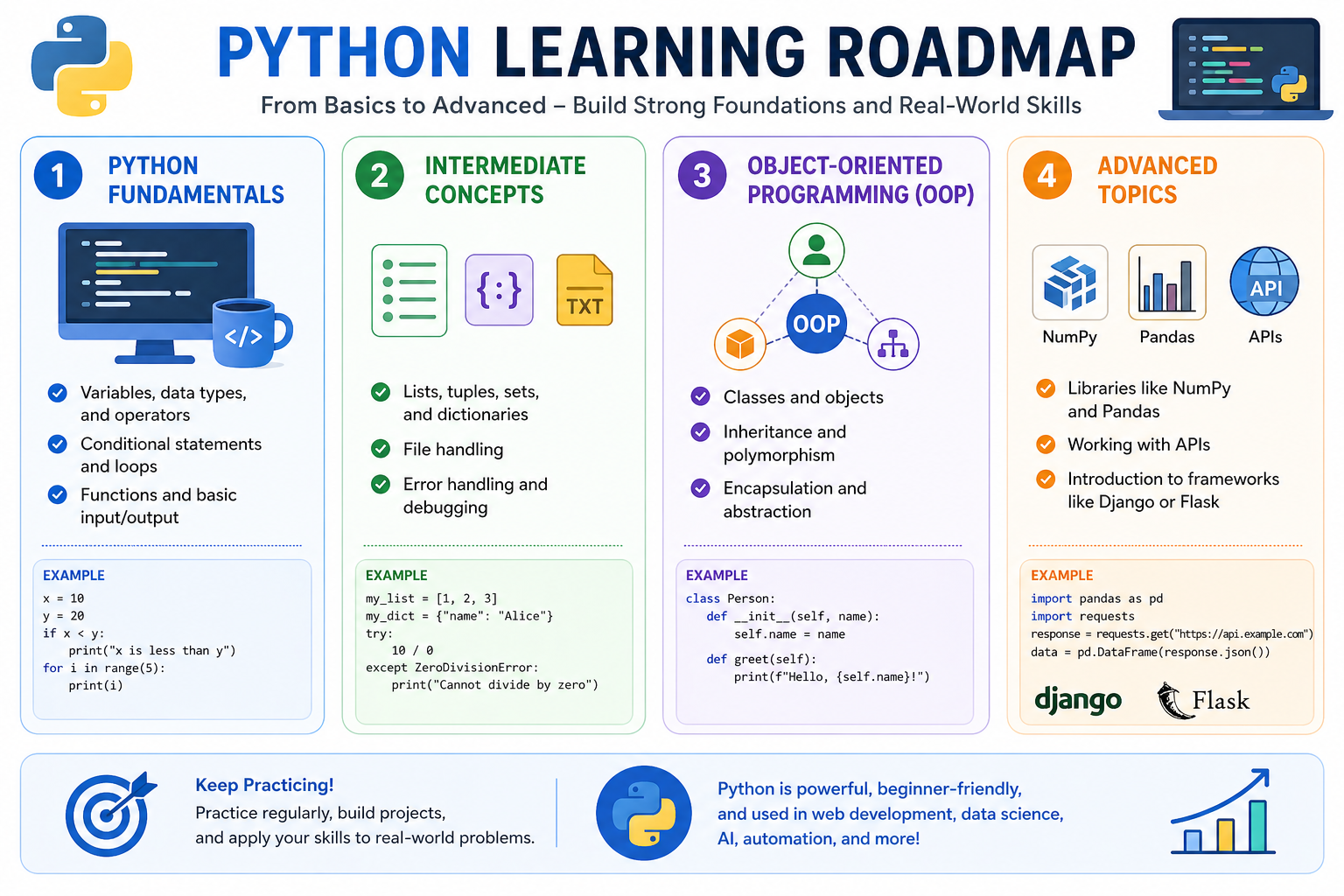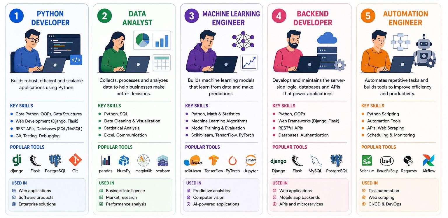 Python programming is one of the best starting points for anyone looking to enter the world of technology. Its simplicity, versatility, and strong industry demand make it a powerful tool for building a successful career.