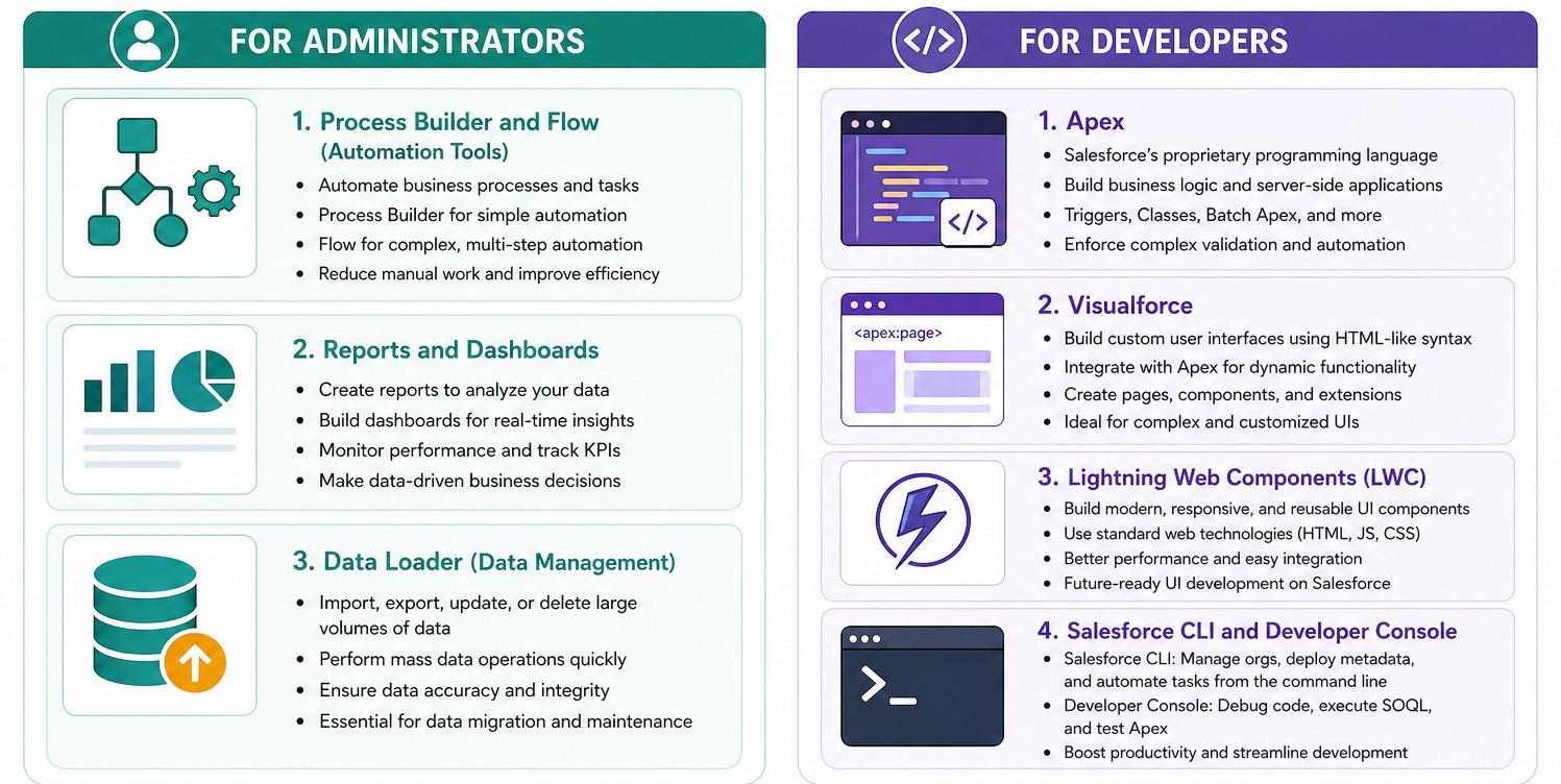 For individuals looking to build a career in technology without heavy coding requirements—or those who want to combine business logic with development—Salesforce Administration and Development offer excellent opportunities.