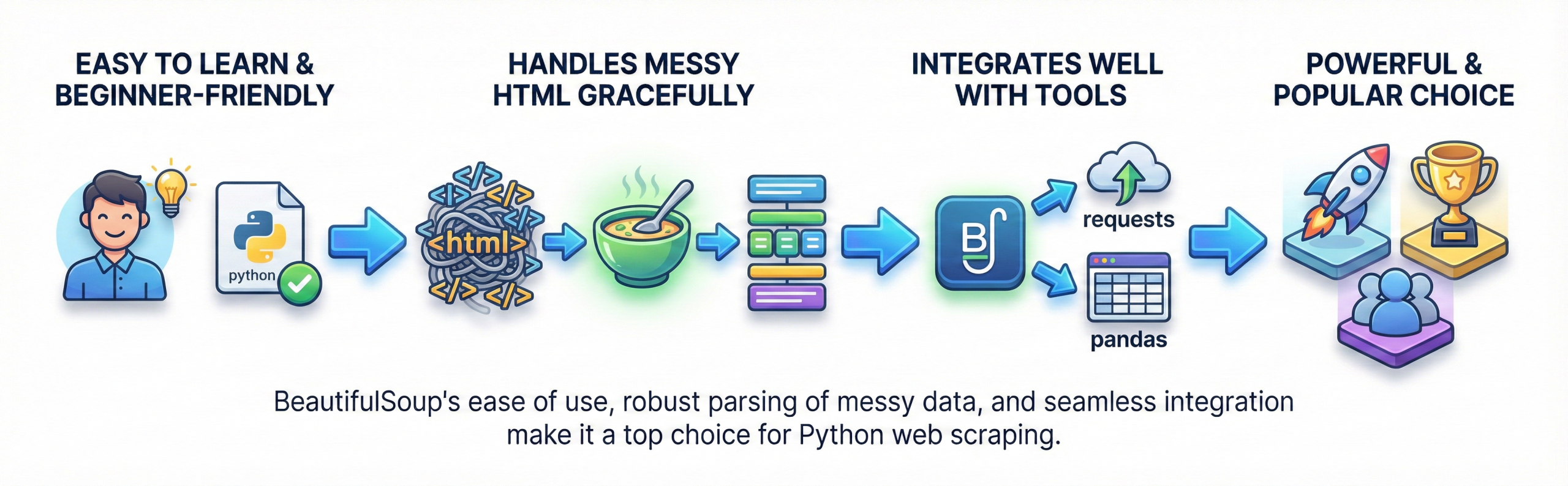 It integrates well with requests and pandas. It is beginner-friendly yet powerful. This makes it a top choice for scraping tasks.