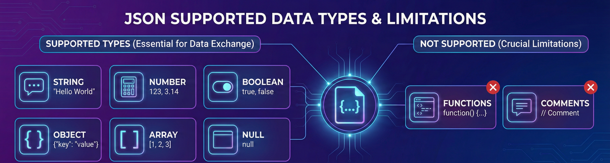 Understanding JSON data types is essential for API development and is often asked in interviews.